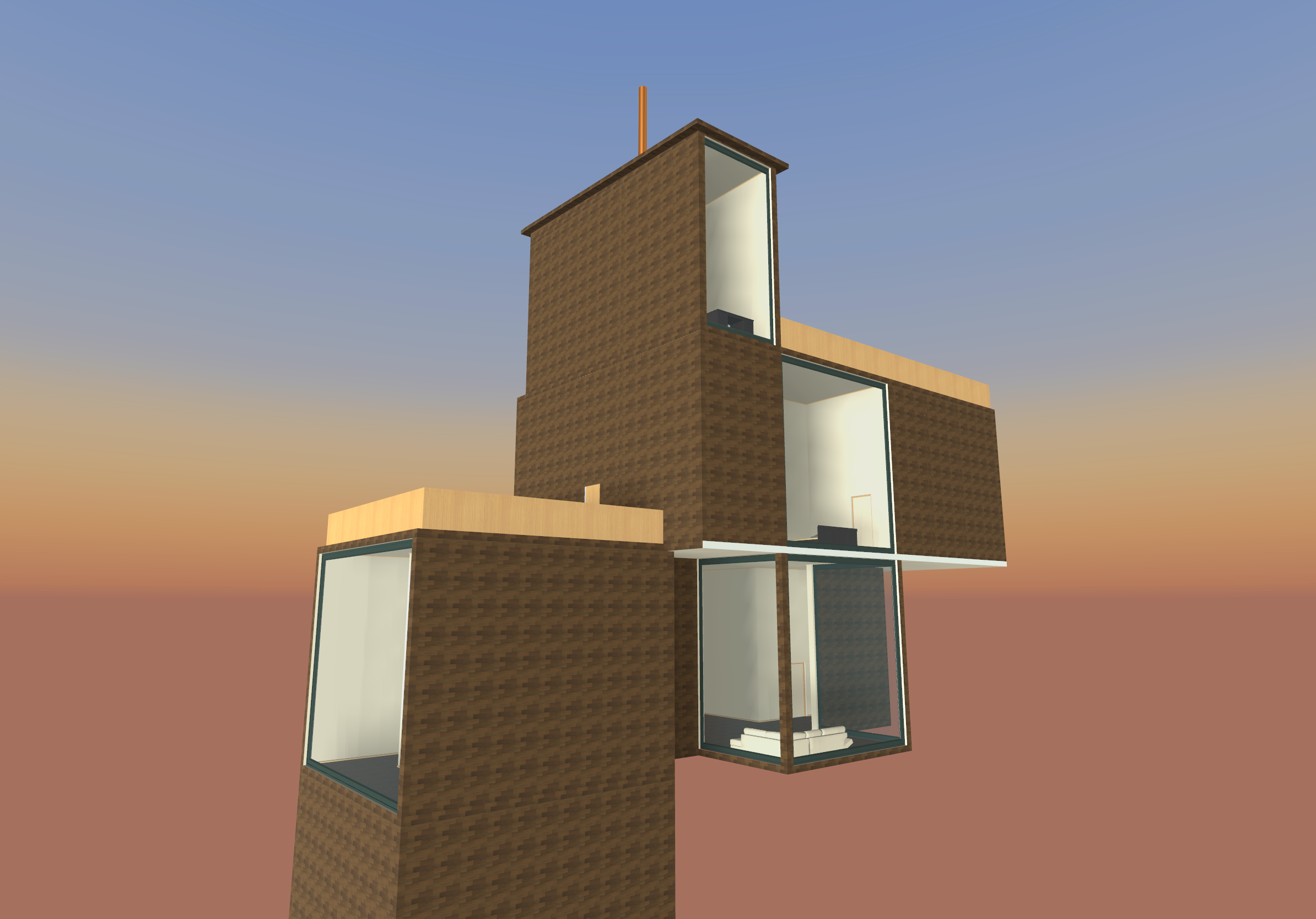 Clark View was inspired by the fake house used in Apple’s events. It is made to be a house in the mountains with paths circling the house to allow for better access to the natural surroundings.