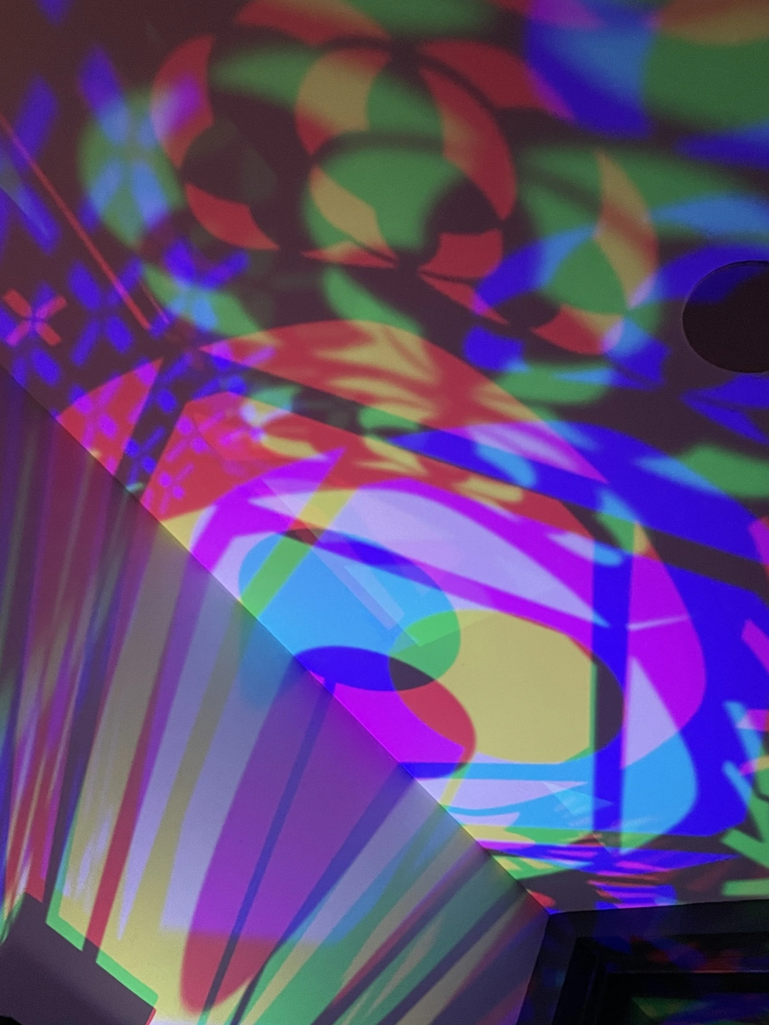Here you can see the pattern night light makes. Let me tell you how these colors mix, remember the lights themselves are only red, green, and blue yet the lights projected can be almost any color.